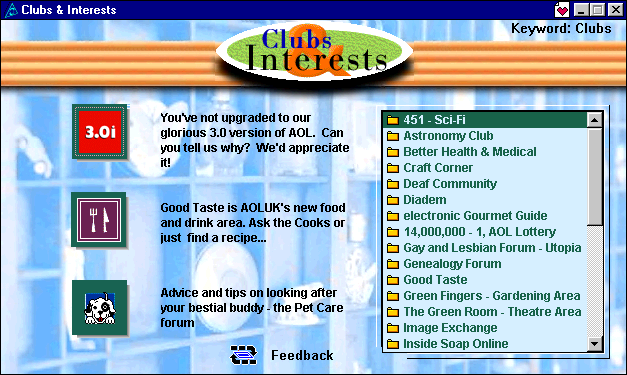 Clubs & Interests UK (AOL 2.5 for Windows)